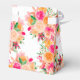 Bolsa de agradecimiento moderna y femenina con flores en acuarela, flores brillantes de naranja, melocotón, rosa y verde en bouquet y fuente de letra elegante para baby shower nupcial chic