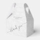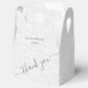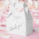 Elegante patrón de impresión de filigrana blanco sobre blanco con sus nombres y agradecimiento en elegante letra gris carbón (o cualquier color) en la parte delantera, estas cajas de favores de fiesta estilo gable son hermosas para favores de boda, favores de ducha de novia o cualquier ocasión especial.