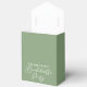 This elegant sage green bachelorette party favor box features classic white script for a bride who is going to have an outdoor event with her bridesmaids. Chic, minimalist bachelorette party boxes for bridesmaid gifts.