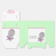 Estrellas de bonito plateadas con un verde suave con una estrella rosada y una imitación de un arco con cuentas. Tipografía con nombre de la futura madre de la ducha de bebé de color rosa. Insertar fecha de Baby Shower. Un bebé dulce está en camino en escritura negra. Fondo verde y blanco pastel con rayas geométricas rosas. Diseño original de obras de arte de TamiraZDesigns.