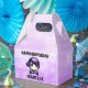 Añada un nombre a estas cajas de favores personalizadas de la fiesta de cumpleaños y púrpura del chica de juegos de Anime.