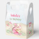Cajas de Favor de la Primera, Segunda o cualquier Cumpleaños Grandes Gable con dinosaurios coloridos rodeados de extravagantes plantas de helecho y globos en tonos rosa, verde y beige. Puede elegir entre 3 tamaños de estas cajas de preferencia gable. Personaliza fácilmente el texto. - Kate Eden Art