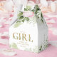 Una elegante caja de regalo para baby shower con temática de niña que presenta follaje verde y tipografía dorada chic. Puedes personalizar con tu propio mensaje de agradecimiento debajo de la tapa. ¡Una forma perfecta de decir gracias a tus invitados! Diseñado por Thisisnotme©