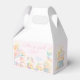 Chica dulce de un primer cumpleaños cajas de favores con dulces color agua pastel sobre un fondo rosa. Estas cajas de favores dulces de un primer cumpleaños se personalizan fácilmente para tu evento simplemente agregando tu texto.