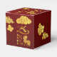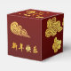 Golden Auspicious clouds + golden Horse paper-cut, golden "Year of the Horse" (original handwriting), golden greeting in Chinese and large golden 2026 original written in calligraphy style + Horse ideogram (font). All elements can be moved you as you wish. Design on classic cube favor box with gradient dark red background. Matching greeting card, holiday postcard, invitation, craft supplies, party supplies and more (soon)... Perfect for a traditional and modern Chinese New Year of the Horse 2026.