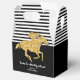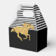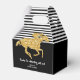 Las cajas de regalo con tema de Derby presentan un caballo de carreras en brillo dorado falso sobre rayas blancas y negras en la parte superior y negro en la parte inferior con tu mensaje personal. Artículos COINCIDENTES en nuestra colección.