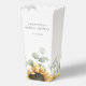 Eleva tu fiesta de despedida de soltera con nuestras cajas de favores que presentan un delicado diseño de girasol y eucalipto. Cada caja encapsula la esencia de la elegancia natural, luciendo suaves tonos de verde y floración de acuarela, lo que la convierte en un perfecto símbolo de gratitud para tus queridos invitados. Ya sea que estés planeando una boda rústica o un evento minimalista moderno, esta caja de favores se combina sin esfuerzo con varios temas, asegurando que tu fiesta de despedida de soltera siga siendo una celebración memorable y elegante.