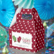 "Christmas Cookie Exchange" party favor box with cute Christmas oven mitts illustration and red and white polka dots design. Digital illustration by Kristine Lee. For more, visit www.kristineleedesigns.com
