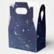 Las cajas de regalos para baby shower "The Sky Moon & Stars Celestial" son una forma mágica de agradecer a los invitados y agregar un toque soñador a tu celebración. Con un encantador fondo de noche estrellada en acuarela azul, estas cajas están adornadas con delicadas estrellas blancas, una luna azul claro caprichosa, estrellas doradas amarillas y un telescopio divertido para un toque celestial dulce. El diseño incluye espacios personalizables en la parte delantera y trasera, lo que te permite agregar el nombre del bebé, el título del baby shower y la fecha del evento para un toque verdaderamente personal. Perfectas para contener pequeños regalos, dulces o recuerdos, estas cajas complementan hermosamente los baby showers con temas celestes, de luna y estrellas, y cielo nocturno.