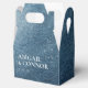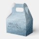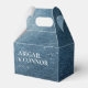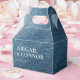 Elementos: fondo de acuarela, fuentes serif y sans serif. Colores: azul, blanco, plata, azul marino. Temas: espacio, estrellas, noche, una noche bajo las estrellas, escrito en las estrellas, celestial, celeste, moderno, contemporáneo, boda nocturna, boda al aire libre. Colección: Suite de Boda Cielo Nocturno Estrellas Azul Marino Blanco. Tipo de producto: Caja de Favor - Gable