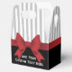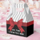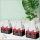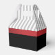 El diseño de este producto presenta una cinta roja ilustrada sobre un fondo negro y franjas grises. Con sus gráficos clásicos únicos, hace cajas de favores elegantes y chic con texto personalizado y un color de franja favorito para cumpleaños, bodas, fiestas de Navidad o cualquier otro evento especial.