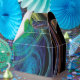 Diseño fractal elegante, arte abstracto, círculos coloridos en un espacio negro