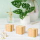 Círculos y puntadas sobre rayas en varios tonos de naranja desde zanahoria oscura hasta melocotón pastel. Otros tipos de cajas de regalo con este diseño disponibles así como otros colores.