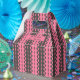 Círculos y puntadas sobre rayas en rosa clavel y carbón (casi negro). Otros tipos de cajas de regalo con este diseño disponibles, así como otros colores.