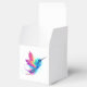 Colibrí luminoso, irrisorio, exótico volador sobre fondo blanco, pintado con pintura multicolor, acuarela. Colibrí arcoiris.
