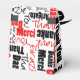 Muestre su gratitud en un estilo de caja de favores de su elección con este collage de palabras en rojo y negro Gracias escrito en varios idiomas y una variedad de estilos de fuente sobre blanco. Seleccione un color de fondo que no sea blanco.