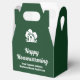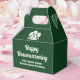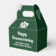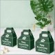 Esta caja de favores de la compañía de bienes raíces del bosque está perfectamente personalizada para un agente inmobiliario que está teniendo una casa abierta o dando un regalo de inauguración cerca de la naturaleza o bosques. La silueta verde de los árboles detrás de una cabaña de troncos y personalizada con el nombre de su agente y negocio de bienes raíces para marketing en el bosque.