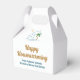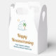 Esta linda caja de regalo de inauguración de la casa de la compañía inmobiliaria tropical presenta una moderna casa de playa azul con una palmera costera fresca y sol de la isla. Personalice estas cajas de favor de marketing con el nombre de su agente y negocio de bienes raíces para un agente inmobiliario a lo largo de la costa.