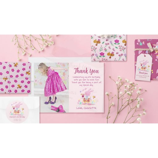 Traiga un toque de magia musical a su celebración con nuestras cajas de favores del jardín de conejitos con acuarela rosa. Perfectamente adecuadas para la fiesta de cumpleaños de una niña o una baby shower caprichosa, este diseño presenta un adorable conejo rosa tocando una trompeta en un jardín lleno de sol. Rodeado de flores en flor, mariposas bailando y corazones alegres, esta escena de "Sinfonía de cumpleaños" crea una atmósfera verdaderamente encantadora de "País de las maravillas" para sus invitados.