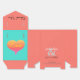 El amor está escrito en amarillo soleado dentro del corazón romántico de la puesta de sol sobre la espalda en tonos de naranja amarillo dorado para rosa contra un fondo color rosa coral bonito. Personalice con los primeros nombres de la novia y Groom en texto en blanco y Fecha de Boda en texto en negro. Gracias por las fiestas de novias y los invitados a la boda. Diseño original de arte gráfico pintado a mano por TamiraZDesigns.