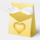 Esta caja de regalo tiene fondo dorado lavado en blanco con un pequeño corazón dorado desvanecido en el lado delantero debajo de la solapa, y un corazón dorado más grande desvanecido en la parte posterior.