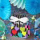 Coloridos corazones colgados en negro. Se puede usar para agradecerte a los invitados. El texto se puede editar o eliminar.