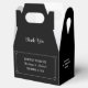Esta caja de favores matrimoniales es moderna y romántica, con corazones elegantes y letras sofisticadas.