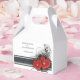 Una romántica caja de favores matrimoniales. Dos corazones con la inicial de la novia y el novio. Los elegantes rollos y las flores dan un respaldo a los corazones. Este aspecto irá bien en cualquier estación boda, primavera, verano, otoño o invierno. Ideal para un boda moderno y perfecto para un boda clásico.