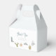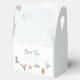 Cuidada y rústica temática del vaquero Primera caja de favores de cumpleaños con ilustracion de bota de vaquero, placa del sheriff, gorra, serpiente y cactus.