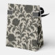 Elegante patrón de damasco floral oscuro con intrincados movimientos ornamentales grises y sutiles rosas rojas, creando un lujoso y dramático estilo vintage.