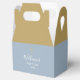 Caja de regalo de bautizo o bautismo elegante en oro y polvo azul con tipografía chic. Puedes personalizar con tu mensaje de agradecimiento en el reverso. ¡Una manera perfecta de agradecer a tus invitados! Diseñada por Thisisnotme©