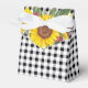 Esta caja de favor de fiesta de Gingham Negro y Girasoles es una forma encantadora y práctica de empaquetar sus favores de fiesta. Con un patrón clásico de gingham negro con tres girasoles brillantes y felices en la solapa frontal, es perfecta para despedidas de soltera, baby showers, cumpleaños y otras ocasiones especiales. Personalice la apariencia eligiendo el color de la cinta (se recomienda blanco o negro para un acabado crujiente y limpio).