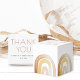 Esta caja de favores de la ducha dulce para bebés cuenta con un ilustracion de color neutro de arco iris en los cuatro lados con texto moderno de tipografía en la parte superior. La parte superior dice "GRACIAS" con tu propio texto personalizado. ¡Este es el diseño perfecto para una ducha de bebé neutral de género dulce y coordina con nuestra colección de Baby Shower "Cute Boho Rainbow"!