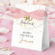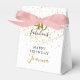 Esta tipografía de escritura negra y dorada chic, caja de favor de confeti de estrellas doradas 40 y fabuloso se puede personalizar con los detalles de su celebración de cumpleaños. Diseñado por Thisisnotme©