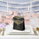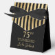 Esta elegante caja de agradecimiento por el 75 cumpleaños con rayas doradas y foil dorado brillante, el nombre de la cumpleañera en una fuente de letra de moda, y atada con un elegante lazo negro sería perfecta para su evento. Sería genial para una estación de dulces, en una mesa de regalos de agradecimiento o en cada lugar con un favor. Asegúrese de pedir suficientes para todos sus invitados.