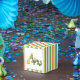 Favoritos de cumpleaños creativos con divertido dragón que escupe fuego apagando velas de cumpleaños.