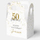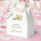 Esta tipografía de escritura negra y dorada chic, caja de favores de confeti de estrellas doradas 50 y fabulosas se puede personalizar con los detalles de su celebración de cumpleaños. Diseñado por Thisisnotme©