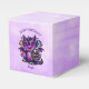 Cute personalized birthday favor box for a girl's birthday party. A sweet anime dragon holding a purple and black birthday gothic cupcake. A sweet thank you gift for guests.