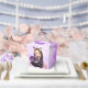 Cute personalized birthday thank you favor box for a girl's birthday party. A sweet anime dragon holding a purple and black birthday gothic cupcake on the front and an anime girl in a fox ears hoodie on the back. A sweet thank you gift for guests.