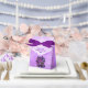 Cute personalized birthday thank you favor box for a girl's birthday party. A sweet anime dragon holding a purple and black birthday gothic cupcake on the front and an anime girl in a fox ears hoodie on the back. A sweet thank you gift for guests.