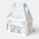 Esta adorable caja de favores incluye elefantes de niños azules y grises con globos y confeti. En los lados hay una cruz de oro. Fácilmente personalizado para su evento haciendo clic en personalizar. ¡Perfecto para los fiestas!