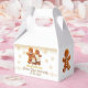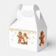 These adorable favor boxes are the perfect way to package your treats. The design features a cute gingerbread family with faux gold glitter confetti.