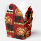 En un cuadrado hay 2 Oxen negro, colocado bajo una forma dorada dentro de la cual está el tercer buey con ideograma. Detrás de la escena hay un fondo rojo en el que las letras decorativas y ornamentadas forman las palabras: AÑO DE LAS BUENAS. Diseñar en la caja de favores de eliminación.Disponible en las cajas de preferencia de tienda, cubo y gable. Tarjeta de felicitación coincidente, postal de vacaciones y más... Perfecto para el Año Nuevo Chino del x 2021 o cumpleaños (personas nacidas en el año Ox).