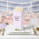 Despedida de soltera con tema de jardín con dahlias blancas, frambuesas y ramitas de menta con tipografía script morada