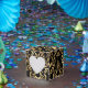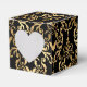 Vintage damask faux Relieve metalizado dorado y caja de favores de halloween negro.