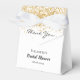 Favores de fiesta de Despedida de soltera elegantes, clásicos y glamorosos. Un fondo blanco elegante con brillo de oro falso. Con el texto: Despedida de soltera y Gracias escrito con una tipografía moderna de letra a mano. Personaliza y añade un nombre y una fecha.