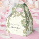 Caja elegante para regalar en la despedida de soltera con diseño de hoja de eucalipto suave en verde salvia y beige sobre un fondo blanco limpio. Personalizable con el nombre de la novia y la fecha de la celebración, es ideal para celebraciones elegantes y de inspiración natural. Perfecta para dulces, pequeños regalos o sorpresas de agradecimiento para tus invitados.