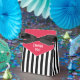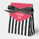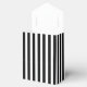 Esta caja de favores de Derby tiene un fondo a rayas negras y blancas con una solapa roja que dice "Gracias" en blanco.