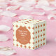 Esta caja de regalo para despedida de soltera inspirada en el pasado presenta un patrón geométrico moderno en terracota y marfil, perfecto para agregar un toque de moda a tu celebración. El diseño circular rinde homenaje al estilo de los 70 mientras mantiene una vibra minimalista y elegante. Ideal para despedidas de soltera con un tema boho o moderno, esta caja está diseñada para hacer que tus invitados se sientan apreciados de una manera única y elegante. Es perfecta para contener pequeños recuerdos o regalos y complementará perfectamente tu decoración. Haz que tu evento sea memorable con esta caja de regalo chic y elegante.
