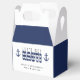 Caja de regalo "Let's Get Nauti" a rayas azules y blancas para una fiesta de soltero / despedida de soltera. Personalízala con tu propio texto.